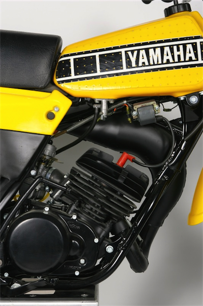 For ’79, Yamaha went with refinements, rather than reinvention for their 123cc mill. A new cylinder featured bigger transfers and a more streamlined exhaust manifold. A redesigned head bumped up the compression and a new ignition heated up the spark. In the transmission, third and fourth gears were beefed up and the shift mechanism was refined for a more solid engagement. |
