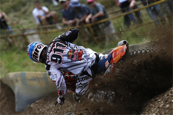 Gautier Paulin made a welcome return from injury and secured fourth overall. Paulin had a steady ride in race one to sixth, but rode brilliantly in race two to go from last to sixth. Paulin sometimes takes a few weeks to get back to race pace after injuries, but he seems pretty close to 100% already. He could be a contender to win again by the last two GPs in Mexico and Brazil. Shaun Simpson showed why Yamaha is interested in signing him for 2015, with a storming ride from 13th to 5th in race one. He struggled a bit more on the slippery track in race two and was locked in an eight rider battle for fifth, but eventually came home eighth, just ahead of fellow Brit Tommy Searle. Searle struggled with an injured thumb all weekend and was 17th in race one, but he rebounded for ninth in race two after yet another poor start. Searle is rumoured to be going to KTM for next season where hopefully he can re-discover the form that had him challenging for World titles back in the MX2 class.