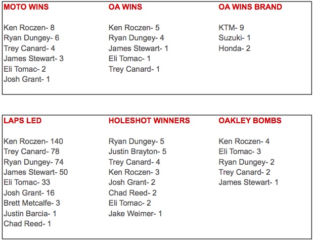 Points, holeshots, laps led- it’s all right here.