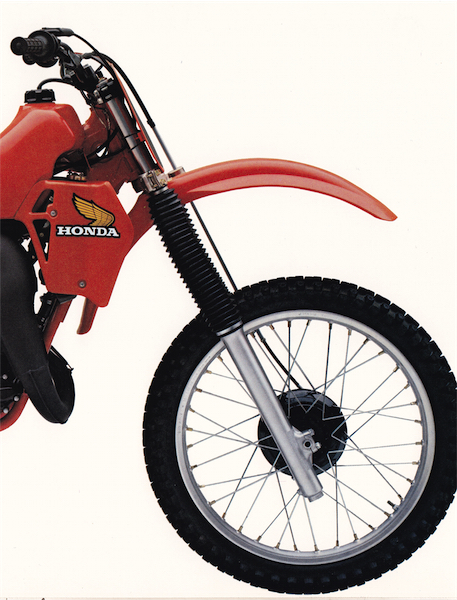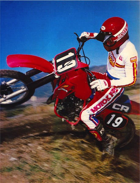 Grip it and rip it: While the motor may have failed to impress, the same could not be said of the CR’s chassis dynamics. The little red rooster turned, jumped and responded like no other 125 before it. After a decade of clankers, Honda nailed the magic formula in 1983. |