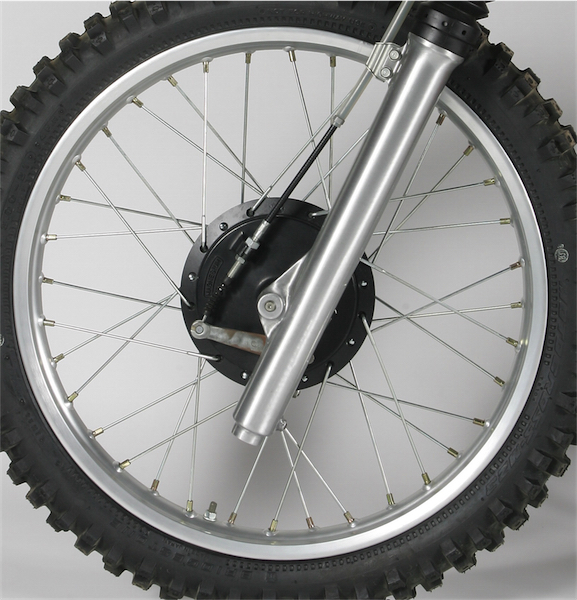 Another feature the CR125R did without in ’83 was the larger CR’s powerful dual-leading shoe binders. |