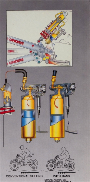 Rube Goldberg: While the BASS sounded like a promising idea, its effectiveness on the track was dubious at best. The BASS did little to calm the YZ’s poorly damped shock and could easily cause the unit to bottom off jumps or whoops if engaged inadvertently. Even worse, the system required careful setup and vigilant watchfulness to assure proper operation. In the end, many riders disconnected it altogether.