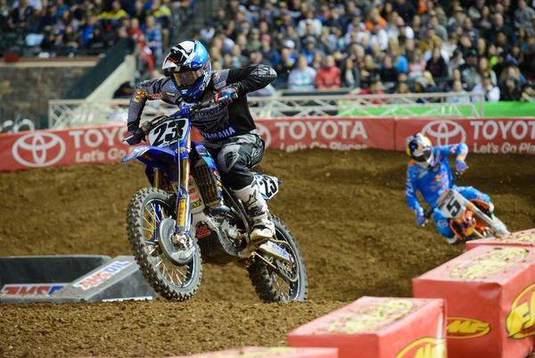 In the 250 class we saw Zach Osborne take the holeshot. Osborne is now a veteran of the class but has yet to break through and get his first win. He certainly has the speed and the experience so it is hard to say at this point what may be holding him back. Granted, he came in to this weekend nursing a thumb injury, but it seems to me that drifting back to sixth was still a bit drastic for Osborne. His off-road adventures in the offseason are unmeasurably good for the sport as a whole as that kind of cross-over in the sport is unprecedented. However, to say that time not spent training and practicing for supercross is harmful to his preparation is not wrong.