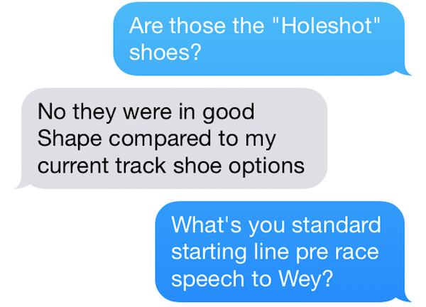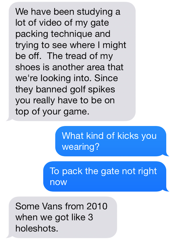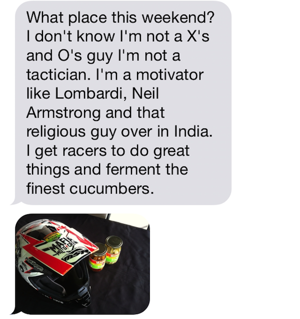 Well, Nick Wey came up Just Short again (insert cringe face emoji). He looked good on the track walk, even complimented me for wearing more clothing than usual. Matthes assured me there was no way that Wey would get back to me, so if you can’t get ahold of a rider, you get the next best thin…his mechanic.
