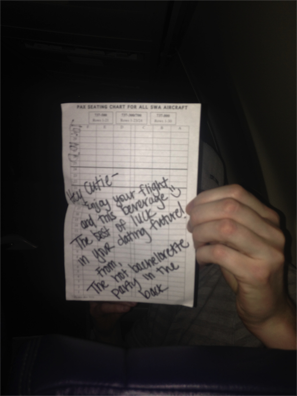 2. Big Red had a bachelorette party send him a love note and buy him a beer on the flight. Always the ladies man.