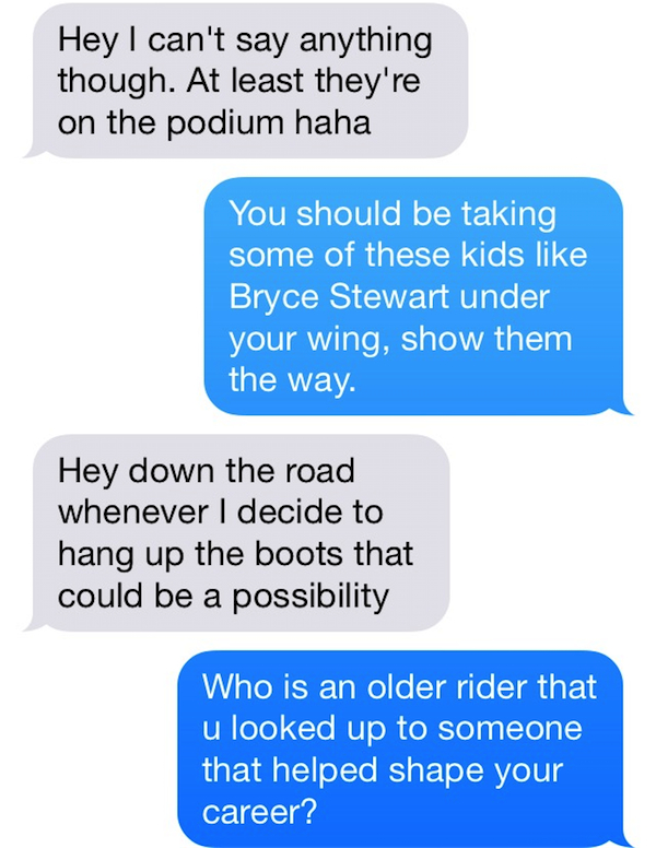 Team Chizz passes on some great advice to his 250 counter part, Bryce Stewart, who also came up Just Short in Arlington.