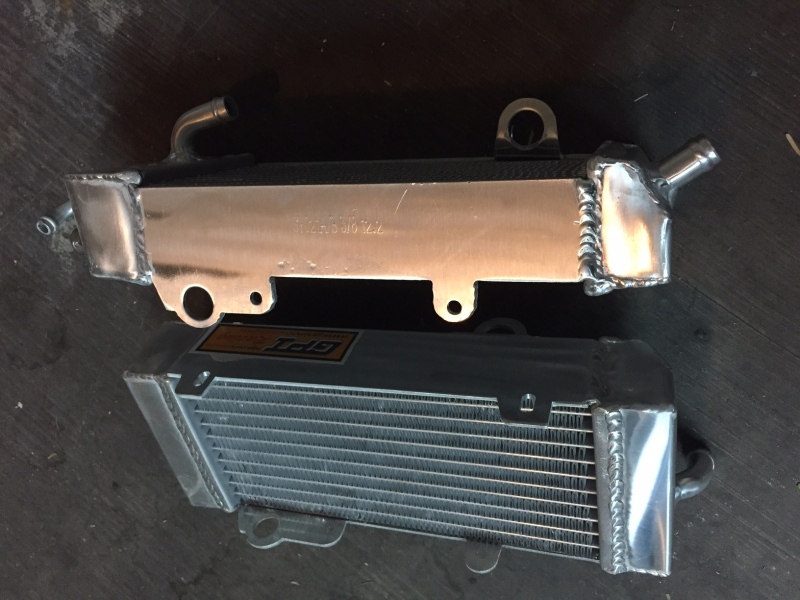 The radiators are pretty smashed up on the bike and new ones are a little pricy. I used these Chinese knock-offs on Project 90 and wasn’t totally stoked on them but they look kind of cool and fit ok. And oh yeah, they’re cheap! Like $85 for the pair. Yes, I’m serious.