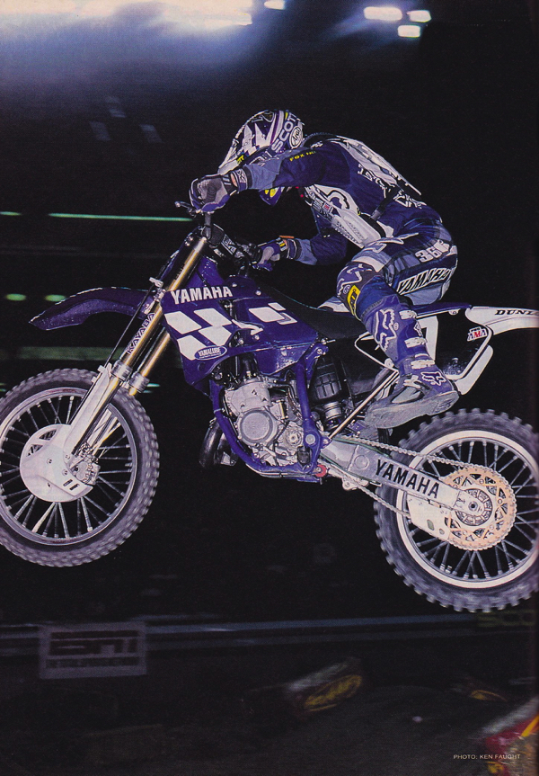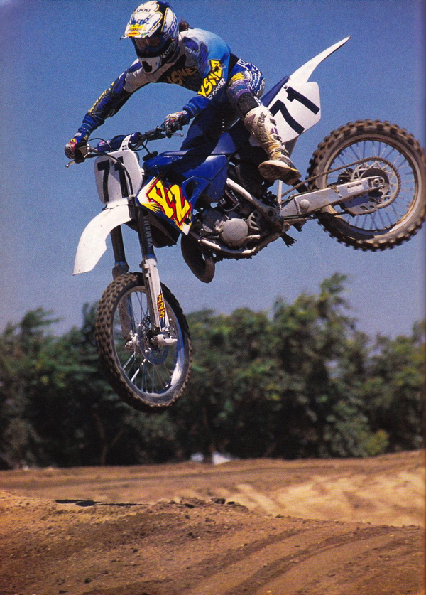 After a very uneven rookie season with Yamaha in 1995 (plagued by arm-pump and injuries), Kevin Windham came out swinging in 1996. On the all-new YZ, Kevin would score 6 victories and roost away with 1996 125 West Coast Supercross title. MX Journal Photo |