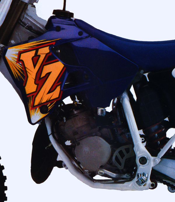 In the motor department, Yamaha retained the same basic design they had used the previous two years, but made several important changes to increase performance. First up was a redesigned crank that decreased crankcase volume for more primary compression and better low-end torque. To increase top-end performance, the YPVS valves were massaged for better sealing and widened by 2.5mm. Secondary compression was also lowered from 9.2:1 to 8.5:1, and the ignition timing was retarded slightly from 1995 to allow freer revving on top. A new piston was both stronger and lighter (by 18 grams) and fed by a set of carbon fiber reeds that drew fuel from a 36mm Mikuni TMX flat-slide carb. In the transmission, new shift forks yet again promised to sort out the infamously tricky Yamaha third-gear upshift. Last, but not least, was an all-new airbox that moved the shock 10mm to the right for a straighter intake tract and increased flow.