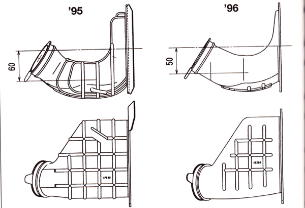 Some of the credit for the ’96 YZ125’s new found power belonged to the new airbox and airboot, which offered more volume and a straighter intake for better flow. |
