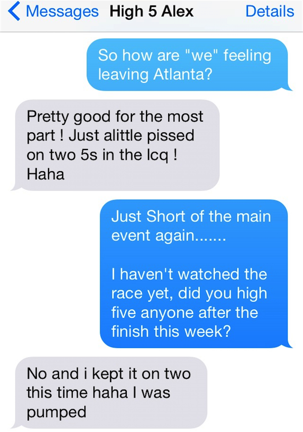 “Ryan pulled a sweet pass on Kreig in Indy, but unfortunately, it was a pass for 3rd place.”