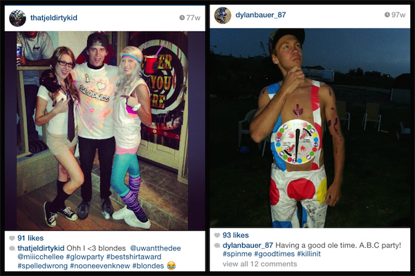 Jelderda isn’t really dressed up here but whatever he’s done it’s working. Bauer will have to explain what an ABC party is, damn I’m getting old. I can only assume the twister costume is rigged to always land on red. |