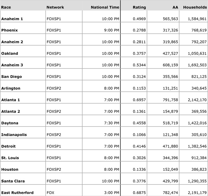2015 SX TV Numbers