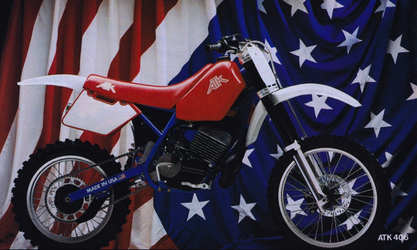 Overview – In 1988, ATK decided to expand its portfolio outside of the rich vet rider four-stroke market into a full line of off-road machines. They hired long time Can-Am ace John Martin (father of 2014 250 National Motocross champion Jeremy and pictured above) to develop, market and beefing up their off-road lineup. Added for ’88 were a 250 and 406, both of which to be powered by air-cooled Rotax two-strokes singles. These stone reliable and claw-hammer simple motors from Austria had been used by Can-Am in the late seventies and early eighties and were considered quite powerful in their day. By 1988, however, the era of power-valves and liquid cooling had left them a step or two behind the times. Dirt Rider magazine photo |
