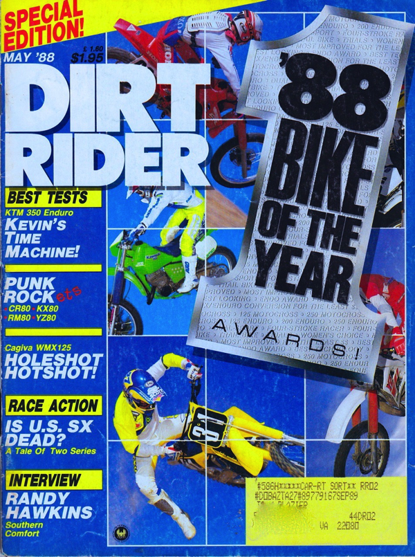 In 1988, Dirt Rider magazine eschewed traditional shootouts in favor of the “Bike Of The Year Awards”. This abbreviated format packed a lot of conclusions, but very little real info into the issue. Thankfully, the more traditional shootout format would make a return in 1989. |