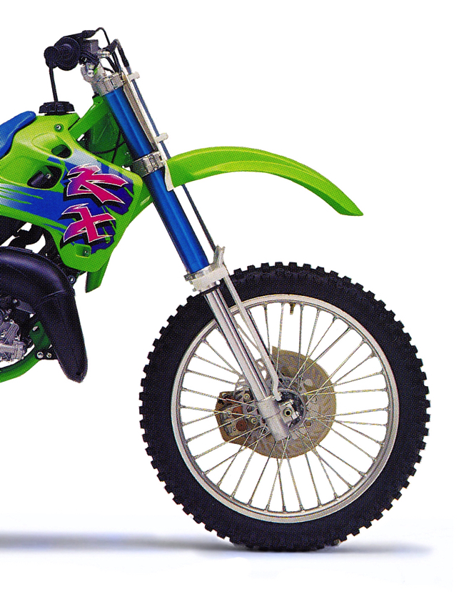 Marshmallow: One area that did not improve on the new KX was its brakes. The switch to a full-floating rotor for ’92 gave the front binder a vague and mushy feel that no one liked. Constant bleeding was necessary to maintain its meager performance and many riders reverted back to a solidly mounted rotor in search of better performance. #Fail