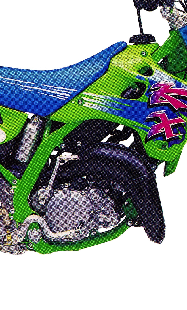 While immensely popular, the new 125 Kwacker was far from perfect and riders quickly found reasons to complain about its avant-guard design. The road-race inspired perimeter frame was cool to look at and incredibly strong, but it was also wide, heavy and tall. This made the bike feel like a 250 in a class full of cut and thrust tiddlers. The innovative bolt-on alloy shock tower mounts and giant platform pegs were trick, but prone to failures. The motor, while decently fast, was boggy off the line and reluctant to shift under power. The KX was still great to look at and fun to ride, but a little fine tuning would certainly have helped.