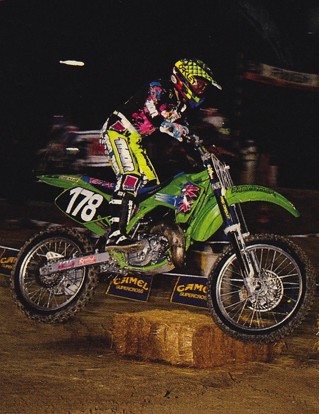 Another one of the up-and-coming riders on the new KX125 in 1992 was Santee, California’s Tommy Clowers. Clowers would spend several years on the circuit pursuing his Supercross dream, before gaining much greater fame in the new sport of Freestyle Motocross. |