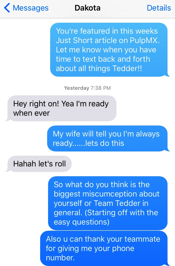 With a focus on the 450 class, Moser gets to know Dakota Tedder a little better… that rhymed.