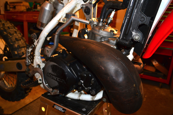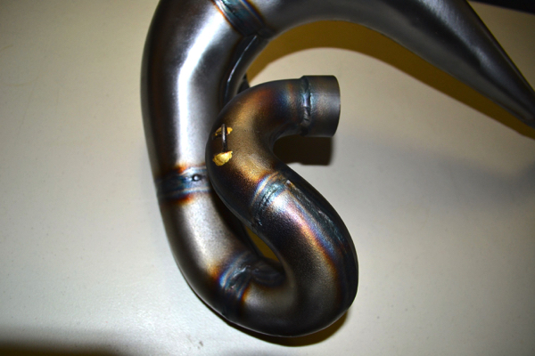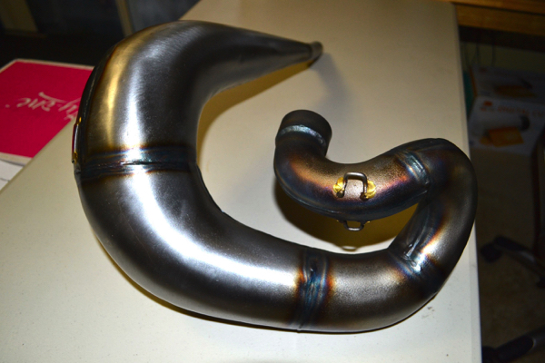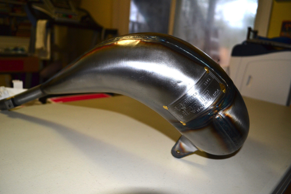 The Pro Circuit pipe that came with the bike was in decent shape structurally, but pretty beat cosmetically. After I posted the first installment of this rebuild on the site, Scott White at Pacific Crest Pipe Repair contacted me and said he could bring my rusted and beaten PC pipe back to life. A week later, I sent the pipe out to Oregon to see what he could do. |