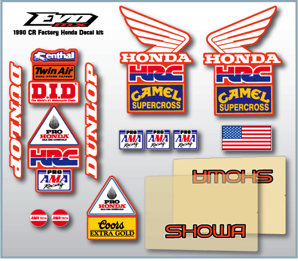I was having a heck of a time sourcing all the decals I needed for my Stanton Replica. I found some Pro Honda decals on Ebay, but the Coors decals were MIA. Also, all the Showa, Renthal and DID decals I have found use an updated font that is not right for the period. When I mentioned my frustrations to Frank at Evo-MX, he said they were in the process of putting together a Factory Honda replica kit that would be coming out in a few weeks. Well, to say this was an answer to my prayers would be an understatement. This kit comes with everything I need and has saved me a ton if work scouring the interwebs. |