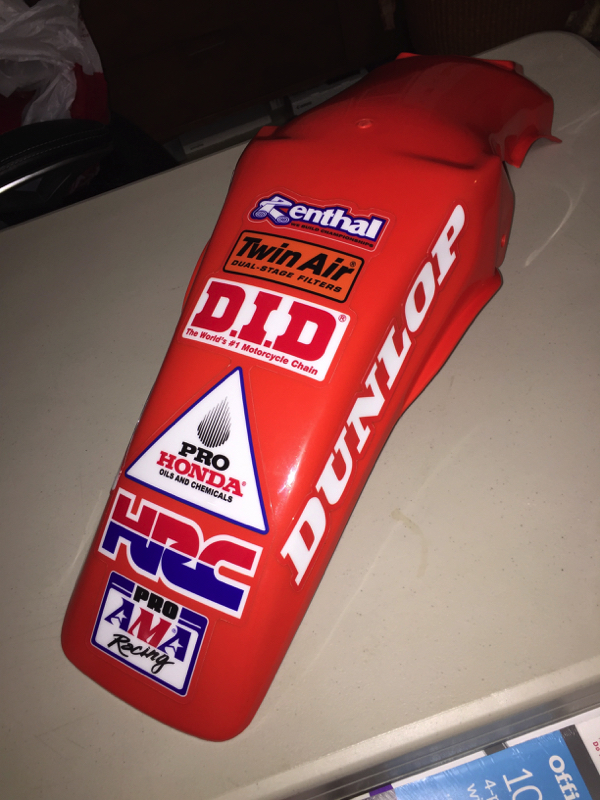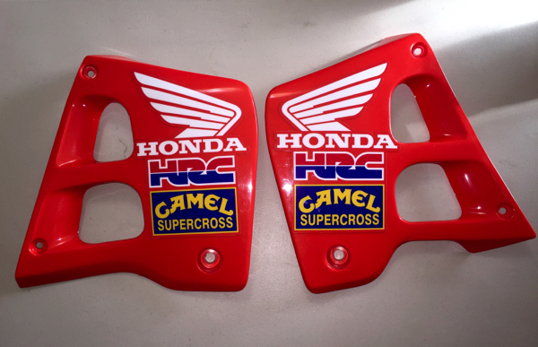 These are easily my all-time favorite Factory Honda graphics. One interesting fact I had never noticed until today is that these Honda graphics are actually about 10% bigger than the original ones that came on the bike. You don’t really notice it until you stick these on and see how much more they fill out the shrouds. When you place them side-by-side, it is actually a pretty big difference. |