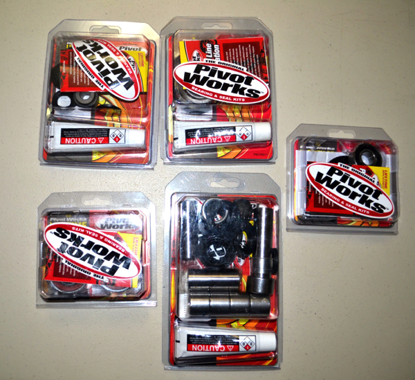 Predictably for a bike ridden in the dunes, fine sand has worked its way into everything and the current ratio of grease-to-sand stands at about 60:40. Thankfully I picked up some new bearings from the nice folks at Pivot Works and I am going to swap out everything while I have the bike apart. They offer kits for just about any bike imaginable and they include everything you need, even the grease. Make sure to use our code “Pulpmx16” at checkout for a sweet discount. |