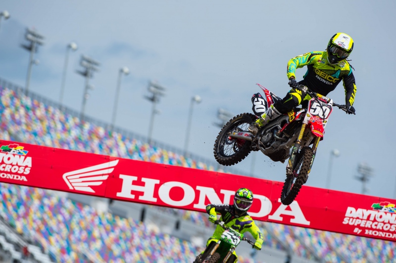 Just like Tomac, Jeremy Martin, as a MX specialist, showed up at Daytona expecting to do better just because the track resembles more of an MX track. He looked better than 7 days ago obviously and showed patience to get around Mookie Stewart on a track where it was very difficult to pass. Malcolm and Martin Davalos were doing well but I don’t think their fitness was as good as Jeremy and Justin’s. Hill rode great but went a bit unnoticed in Atlanta coming from last to 5th. His performance in Georgia tells us that he’s physically ready to race 15 laps. We know J-Mart is physically ready after his two outdoor titles. I think as always in Daytona, fitness played a big role on Saturday. When I saw Malcolm start to land from big jumps sitting on the seat and riding very defensively, I knew it was a matter of time before he was gonna lose some positions. His leg strength isn’t up to par yet. His last failed attempt to brake check Davalos was pretty stupid and he even stalled the bike when he looked back to Davalos.