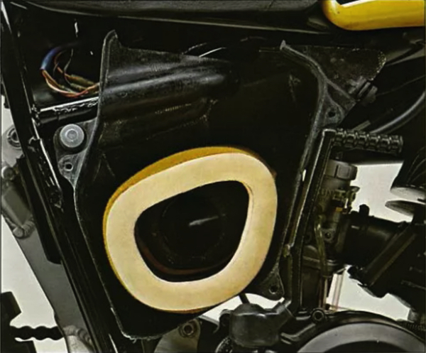 Due to the design of the engine, the countershaft was several inches from the swingarm pivot and this led to issues with the chain rollers. At full extension, the top roller was put under a great deal of strain and broken rollers were common. Worst of all, when the roller expired, the chain liked to chew directly into the intake boot, allowing a direct shot of terra firma into the top end, ugh. Of course, the YZ’s airbox did not need a lot of help in this department, as the stock filter was pretty much worthless. When new, it sealed poorly and after a few cleanings, it was guaranteed to come apart in your hands. JT Racing sold a lot of Phase 2 Filters in 1978.