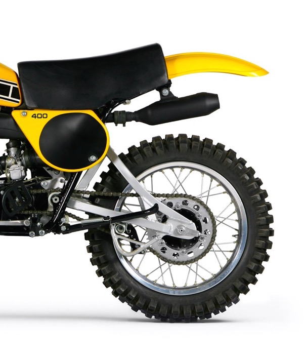 In Yamaha’s original Monocross design, the YZ’s large DeCarbon single shock was carried inside a hollow channel in the frame’s main backbone. While this originally gave the Yamaha machines a significant travel advantage, it did lead to other issues. With its damper buried deep inside the chassis, fading was always an issue and the unique frame geometry of the monoshock design could make the bike unpredictable when not under a load. By 1978, The Monocross’ advantages had all but disappeared and new long-travel dual-shock systems from competitors like Suzuki were actually offering more travel and better performance. |