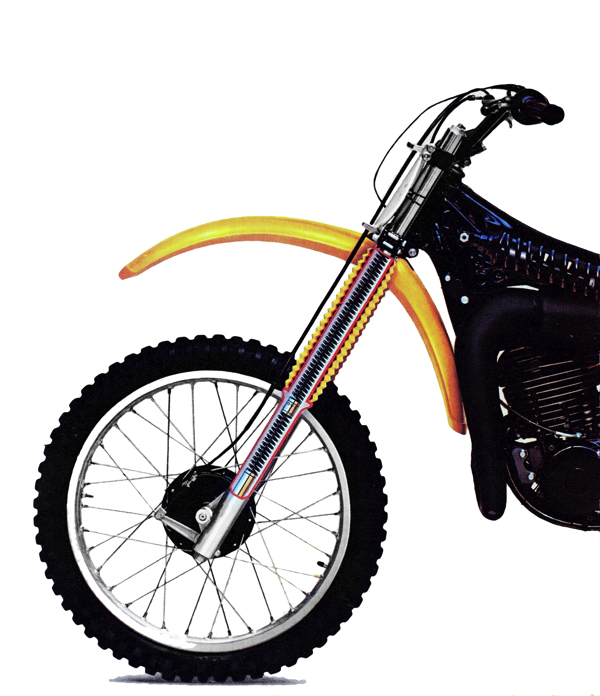 In 1975, Yamaha introduced the masses to the joys of long travel suspension with the introduction of the limited production YZ250B and YZ360B. These two “works replicas” were light, exotic and out of the budget of most weekend warriors. Based on the designs of Belgian engineer Lucien Tilkens, the new YZ’s took the sport by storm with their works-like suspension and cutting edge performance. Offering twice the travel of conventional dual-shock arrangements of the time, the new monoshock suspension was a revolution.