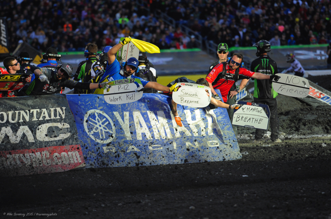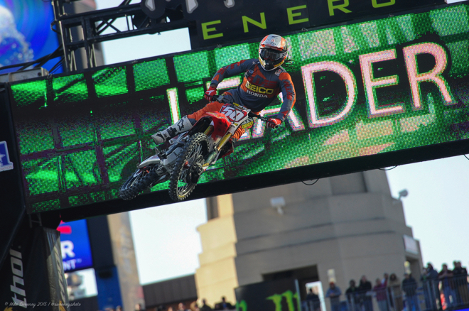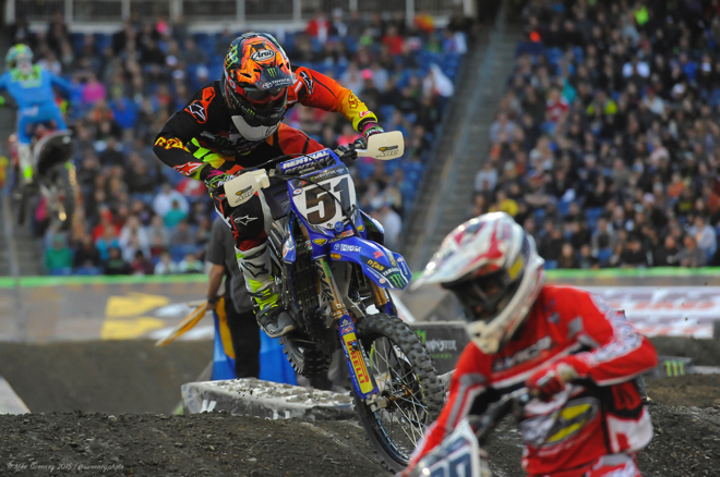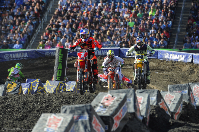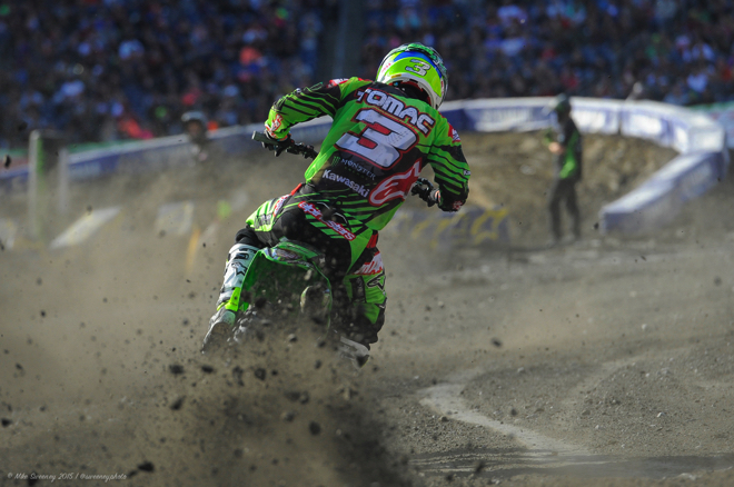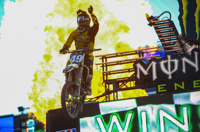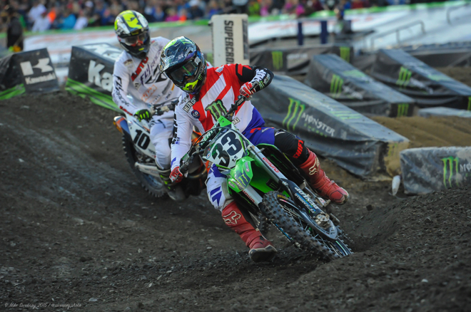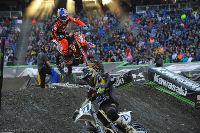 Dungey couldn’t be happy when training partner Jason Anderson went by in the middle of the main event. Dungey regrouped and made it back around JA21, keeping his podium streak intact. If Dungey has any chink in the armor, it’s tracks like Foxborough and what MetLife will probably present. |