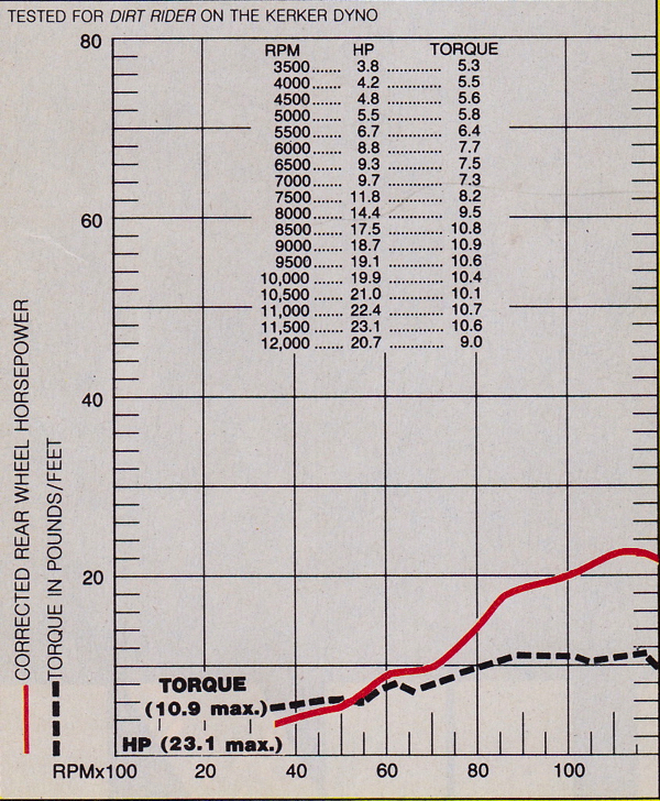 DOA: In 1986, the RM125 had the least effective powerband in the class by a wide margin. It lacked low-end torque and gave up almost four horsepower to the other bikes at peak. |