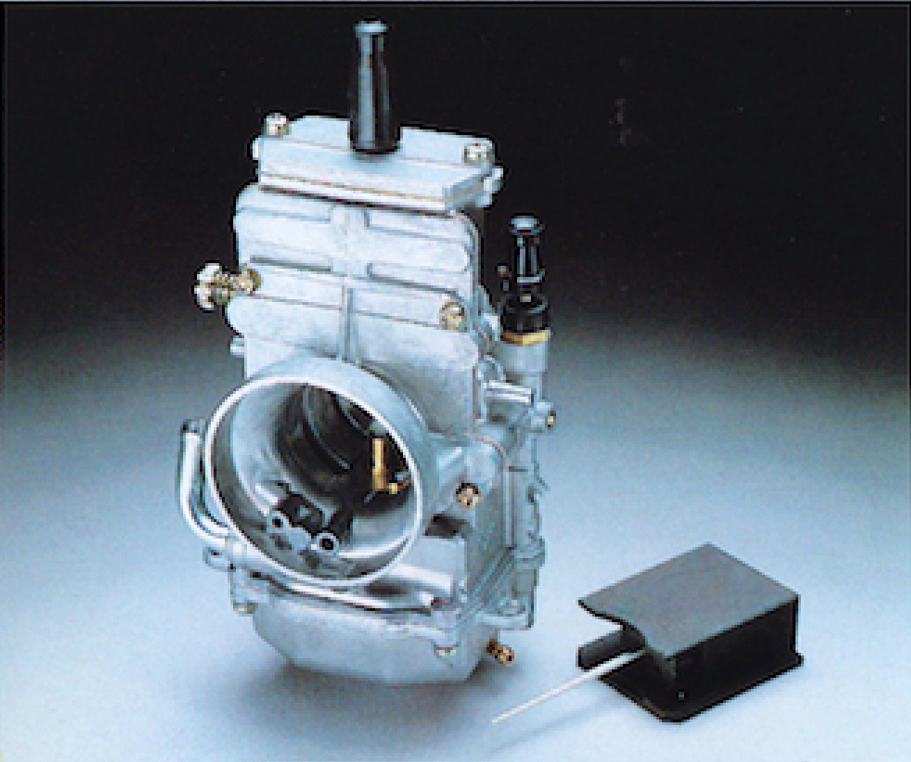 The RM’s 34mm flat-slide Mikuni carburetor looked cool, but did very little to aid the Suzuki’s meager output. |