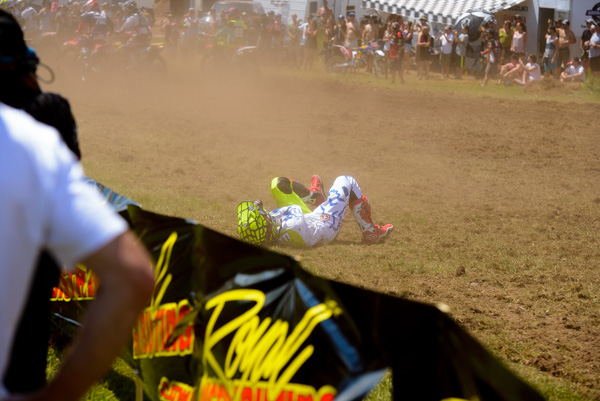 | This pretty much summed up Colton Facciotti’s day. Down before even getting to the first turn in moto one, he grabbed a good start in moto two and then proceeded to land in a pile of fluff on the landing of the first jump and got plowed into. Not a good day and now it will be determined if he can line up next weekend in Moncton. |