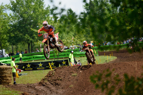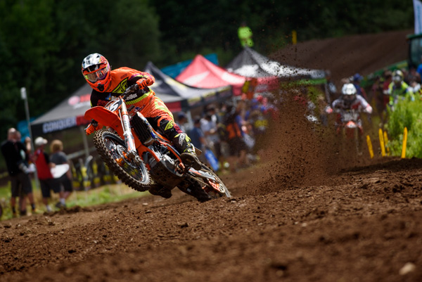 The Pleasant Valley track looks nice when you pull in. Lush green grass, white fences, chocolate dirt – a great looking facility. Riders opinions of the track though were certainly not as complimentary. It may have been the most universally hated track I’ve seen in 10 years of covering the Canadian series, and that includes Nanaimo. Narrow, weird obstacles, extremely slick dirt, lack of multiple lines and a start that seemed impossible to get through clean, left many riders fuming after taking to the track. Still the weather held out, plenty of passionate East Coast fans came out and there’s lots of potential to make this a great stop on the series. No doubt the Cooke family will take what they learned from the race this year and make things better for 2017. In the end, it was an all-KTM day as it was a Orange bike 1-2-3 sweep in MX2 and Davi Millsaps bounced back after a couple off weekends to obiterate the field in MX1. Here’s a look at the day and the many American riders who have made their way up to race in the Great White North…