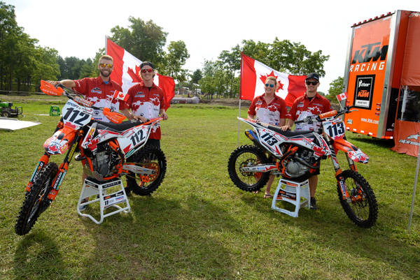 | The TransCan was also a great oppurtunity to unveil the KTM part of Canada’s MXdN team. Kaven Benoit(112) is flying the flag in MX1 while Shawn Maffenbeier will be representing Canada in the MX2 class. Not pictured is Tyler Medaglia, who was racing down at Budds Creek. |