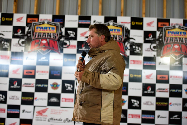 | Track owner, Brett Lee, gives the riders the rundown on how Sunday’s racing is going to go and thanks everyone for sticking it out. |