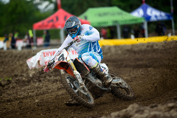 | Shawn Maffenbeier was 350 mounted for the race and looked to be a challenger to his MXdN teammate, Kaven Benoit for the win. He would finish second in the MX1 final. |