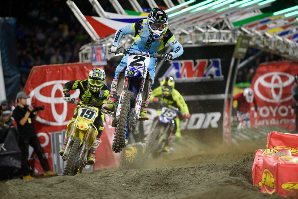 I didn’t like his forks at the Monster Cup. They were maybe good for Enduro-X but not SX. I’ve talked about it here or on Lebig’s site. Bike has improved since then and he looked more comfortable in Anaheim. I really like how he anticipates the track. He’s always thinking ahead which helps him keep his overall momentum. If you looked at him, he doesn’t look as aggressive as Tomac, Musquin or even Dungey on Saturday. But, his speed around the track has the least amount of difference between the fastest and the slowest. He’s always moving but to do so you have to pick good lines and put your wheels in the right places. He did just that. Seriously, if you’re halfway smart and know a little bit of moto, it you watch the main event, you will get it very easily.