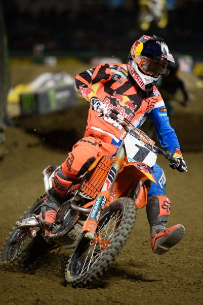 Sloppy, shitty SX track from the rain and soft track. It made the best riders in the world look like, at times, C riders. How do you ride a track like that in the ruts?