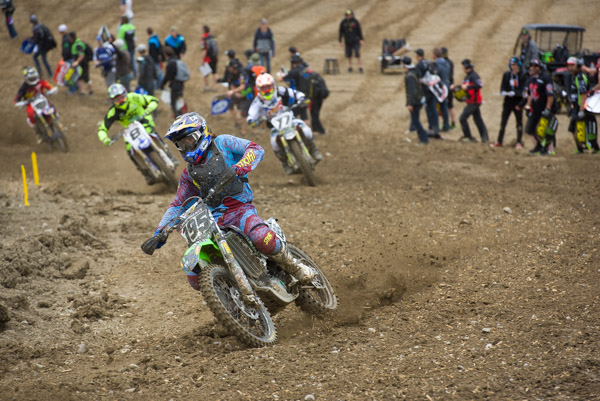 | Points leader, Shawn Maffenbeier, reeled in the defending champ, Cole Thompson, in moto one and made the pass for the lead but Thompson regrouped and closed back in. Maff would fall and drop back to third as Thompson took his first moto win of the season. |
