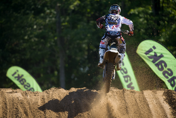 | Dillan Epstein showed good speed at Gopher and put in a couple passes for the lead on Mike Alessi in moto two but a shock malfunction left him nursing his bike home to 25th. |
