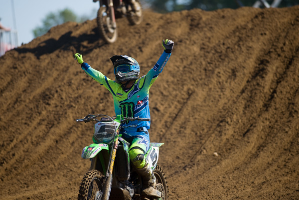 | Despite being sick all week, Colton Facciotti broke through in moto one to grab his first moto win of the season, on his adopted home track. |