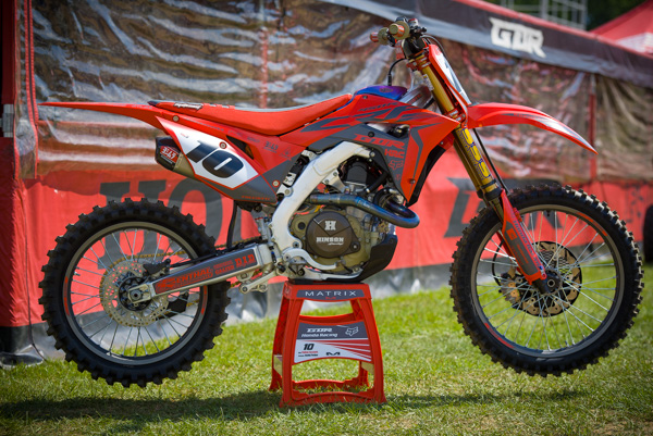 | With the GDR Racing Honda team based at Gopher Dunes, they always like to roll out a custom look for the race. This year they went with a sweet mat red finish on the machines of Colton Facciotti and Dylan Wright. |