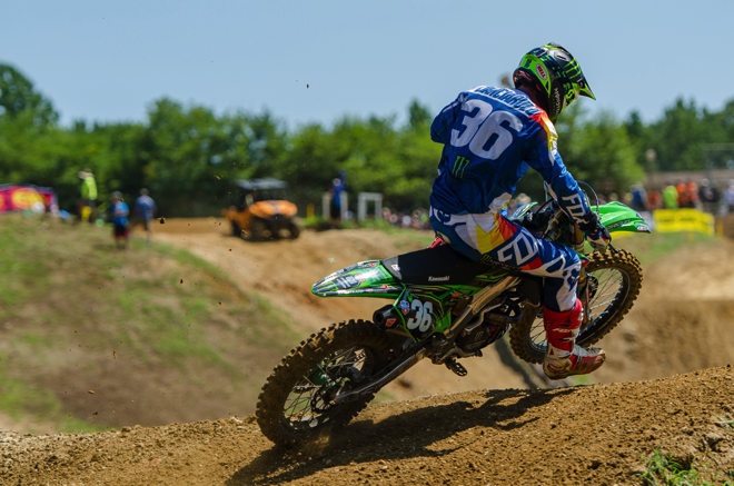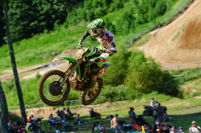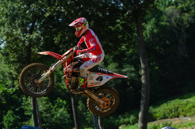 Dakota Alix moved up to the 450 for the Nationals with the absence of Davi Millsaps and he’s had some decent rides and found himself on the ground a LOT less in the first corner than he did on the 250 in SX. |