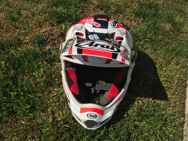 Starting with the basics of the Arai lid, the visor is long and wide enough to provide better protection from your buddies roost. The visor comes with a black sticker on the underside to reduce glare and has large air vents for an ample amount of cooling. Rather than Arai drilling more or larger holes in the shell, the venting pieces on the top and back of the helmet have been designed to be more efficient at moving air through the helmet. On the older Arai’s I had a problem with the front of the helmet being to close to my big nose, but Arai has since moved the grill and mouth vents to the front of the bar, creating more space in front of my face. The cheek pad design hinges out of the way when taking on or off the helmet, yet is supportive and secure while riding. As with all Arai helmets, the Pro4 features a multi-density foam that Arai claims, in conjunction with the helmet’s stiff shell, provides better protection in a wide variety of crashes.