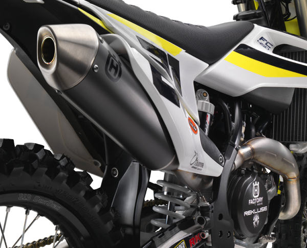 The header pipe features a new flow-designed resonance chamber that is integrated into the header pipe. The new header pipe also features a new joining position allowing it to be removed without removing the rear shock. Hallelujah!!!! The new silencer is shorter and more compact while claiming to deliver the same damping volume and noise level. The unit is crafted from lightweight aluminum and is stylishly finished off in a new coating that proudly carries the Husqvarna Motorcycles logo.