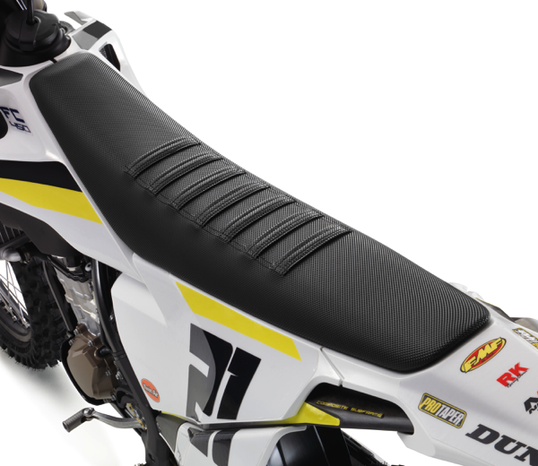 The FC 450 ROCKSTAR EDITION features fresh bodywork. The new bodywork showcases Husqvarna Motorcycles’ pioneering design direction in motocross motorcycles. Apart from the Swedish inspired design, the ergonomics are specifically tailored to deliver greater comfort and control for the rider. Speaking with the R&D guys the contact points have been slimmed down making movement between riding positions as seamless as possible. Additionally, the new seat line and high grip seat cover add grip to the machine.