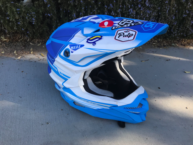 Shoei’s new VFX-EVO is their latest DOT and Snell approved off-road helmet that pays tribute to its VFX-W predecessor while updating some styling and incorporating a rotational-impact-protection system that Shoei calls “Motion Energy Distribution System” (M.E.D.S.). Other helmet companies have implemented a similar system, known as “Multi-directional Impact Protection System” (MIPS), so it’s interesting to see helmet technology moving in this direction, though each helmet manufacturer has its own way of marketing it.